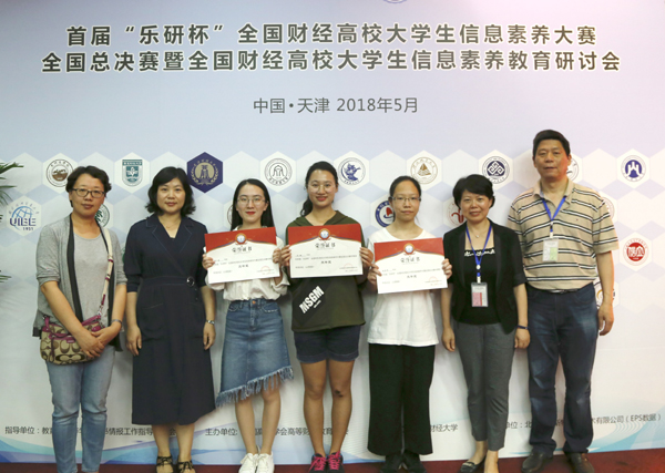 本网讯 近日,首届“乐研杯”全国财经高校大学生信息素养大赛全国总决赛在天津财经大学举行,来自全国财经高校的35支代表队参加了比赛。我校由梅文馨、郑惠琼、孙琳组成的“Data Miner”代表队,在图书馆刘志芳、沈国弟两位老师的指导下,荣获大赛三等奖。我校图书馆荣获优秀组织奖。副校长励如孟出席开幕式并致辞。图书馆馆长吴利群主持大赛颁奖仪式并作总结发言。