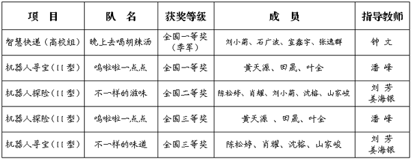 附2018中国旅游暨安防机器人大赛我校获奖名单