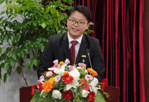 浙江大学研究生会主席韩迦南代表兄弟高校致辞。