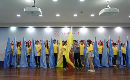 本网讯 7月6日,学校2018年暑期社会实践活动出征仪式在下沙校区举行。副校长黄建新,校党委委员、宣传部部长徐晓东,省农业和农村工作办公室、社会发展处处长邵晨曲,各相关职能部门和学院分管学生工作负责人、暑期社会实践指导教师和学生代表等近300人参加出征仪式。