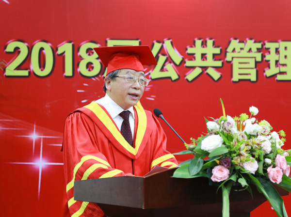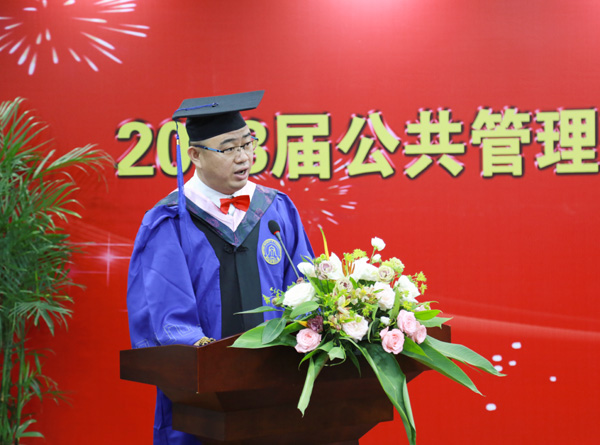 公共管理学院院长郭剑鸣为毕业生颁发证书