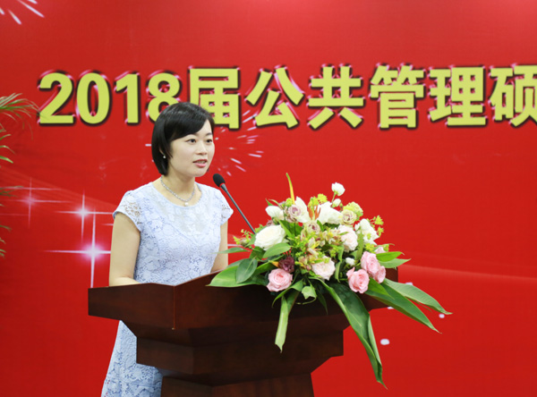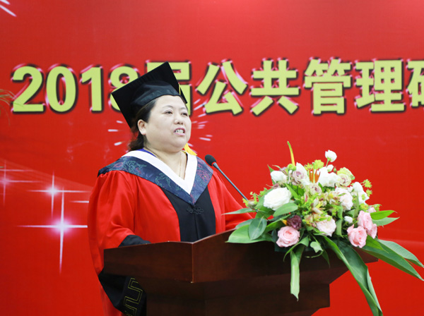 导师代表、工商管理学院沈渊教授,毕业生代表、2018届MBA专业李玉亮同学,在校生代表、2017级MPA专业高蓓蓓同学分别在典礼上发言。