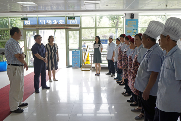 每到一处,校领导都与在校师生员工亲切交谈,详细询问和了解大家暑期的生活、学习和工作情况,并叮嘱大家要切实做好防暑降温工作,注重劳逸结合。校领导对后勤保障部门员工冒着酷暑仍坚持工作表示感谢,希望大家再接再厉,确保学校暑期各项工作正常运行,为暑期留校师生提供优质可靠的后勤保障服务。校领导叮嘱各工程负责人和施工人员,要切实绷紧安全生产这个弦,保质保量完成好各项基建和改造工程,为学校下一步建设发展奠定坚实基础。校领导勉励留校学生和运动队要合理安排好作息时间,认真抓好学习和训练。