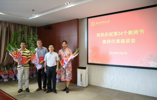 本网讯 “我代表学校向辛勤耕耘在教学、科研、管理工作一线的全体教师,致以最衷心的节日祝福!向全体离退休教师,致以最崇高的敬意!向受表彰的各位老师,表示最热烈的祝贺!”在9月9日召开的学校庆祝第34个教师节暨优秀教师表彰会上,校长钟晓敏满怀深情地说。会议隆重表彰了省高校优秀教师、省高校优秀辅导员、省“三育人”先进个人、省教育系统优秀工会工作者、校第三届教学突出贡献提名奖获得者、任教30年教师代表、校风华奖(进校工作满30年教职工)获得者代表、校优秀教师代表等。会议由副校长励如孟主持。