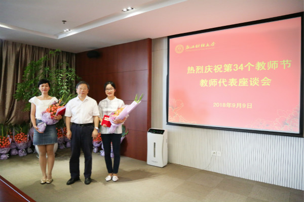 校党委委员、宣传部部长徐晓东向其他到会教师代表献花