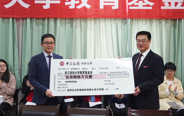 本网讯 11月3日上午,由方利强校友捐资200万设立的“诚邦教育基金”签约仪式在我校下沙校区举行。校友总会会长、校党委书记李金昌,校友总会副会长兼秘书长、校党委副书记黄建新,校友总会副会长、校党委委员、宣传部部长徐晓东,1990届校友、诚邦生态环境股份有限公司财务总监叶帆校友等出席签约仪式。