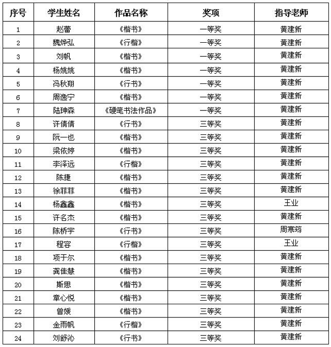 附第五届浙江省大中小学生规范汉字书写大赛我校获奖名单