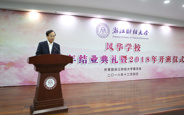 本网讯 12月4日,风华学校2017级结业典礼暨2018级开班仪式在我校下沙校区举行。校党委副书记黄建新,学生处、研究生院、校友办、校团委相关负责人,2018级风华学校导师及师生代表200余人参加活动。
