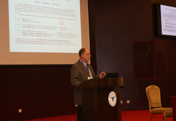 加州大学洛杉矶分校Tim Stowell教授、法国国家科学院和纽约大学Philippe Schlenker教授、英国伦敦大学学院Andrew Nevins教授分别发表了主旨演讲,从时制指称、符号语言的意义表达和实验形态句法等角度对语言进行了诠释。