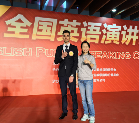 其中,国际学院2017级留学生POLYAKOV VYACHESLAV(中文名:韦辰)在杨晨音、潘江峰、缪佳老师指导下,荣获英语演讲全国总决赛二等奖,是我校外籍学生在此项目首次获奖。金融学院2016级学生滕媛媛在刘丽华、陈萍萍、徐莎莎老师指导下稳定发挥,获得英语写作全国总决赛二等奖。