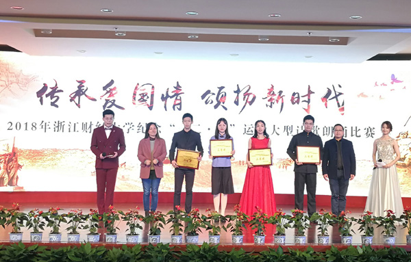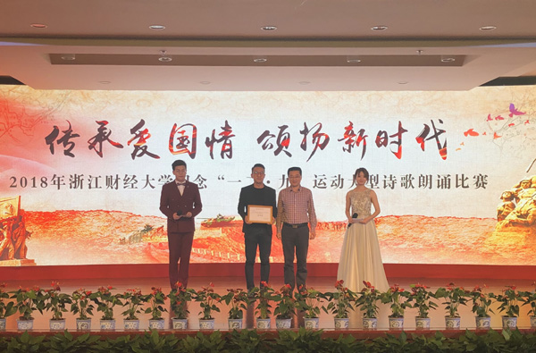 黄建新在致辞中指出,在改革开放40周年之际,学校举办纪念“一二·九”运动大型诗歌朗诵比赛更具有特殊的意义。广大浙财学子要在习近平新时代中国特色社会主义思想的指引下,铭记这段历史,珍惜改革成果,努力践行“爱国、励志、求真、力行”的要求,争做德智体美劳全面发展的社会主义建设者和接班人,在祖国的万里长空放飞青春梦想,谱写无愧于时代的青春赞歌。
