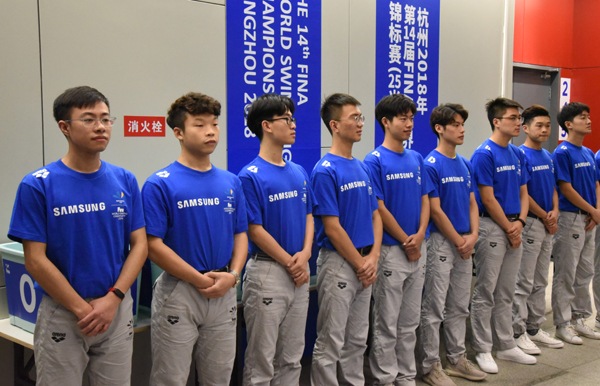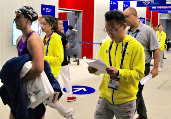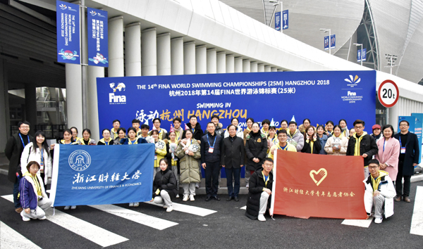 本网讯 12月11日至16日,2018年第14届FINA世界游泳锦标赛(25米)在杭州举行,我校116名志愿者参与了赛事的志愿服务工作,他们用真诚、微笑、责任与担当诠释了志愿服务精神,确保了赛事的顺利开展,赢得了组委会、运动员等的广泛赞誉。