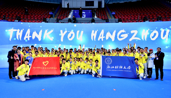面对世界级比赛,我校志愿者努力践行“进德修业、与时偕行”的校训,秉持“无志愿、不大学”的理念,发扬“浙财精神”,为大赛的顺利举办添砖加瓦,频频亮出“最美浙财名片”,也向世界展示我校青年积极向上的良好精神面貌。