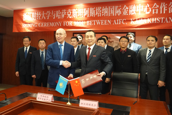 凯拉特对学校的热情接待表示感谢,并简要介绍了阿斯塔纳国际金融中心成立的背景和主要工作职责。他说,哈中两国建交25年来,一直保持着健康稳定的友谊,已成为睦邻友好和互利合作的典范。他希望,合作备忘录的签署将有助于浙江财经大学哈萨克斯坦中心的发展,为哈中的人才培养、友谊常驻作出积极贡献。