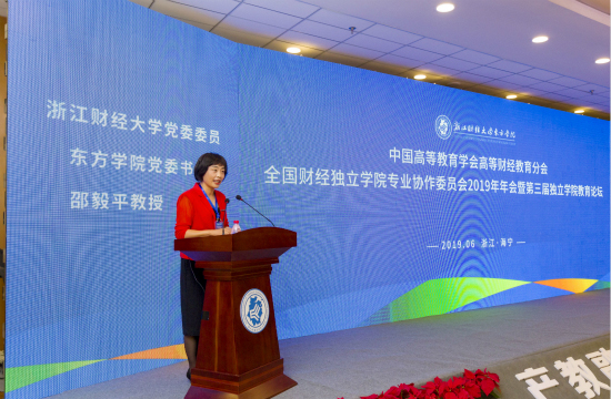 中国科教评价研究院院长邱均平教授,宁波财经学院校长王云儿教授,西安财经大学行知学院副院长侯方勇副教授,山东财经大学燕山学院院长、党委副书记刘瑞波教授,上海财经大学浙江学院副院长邱风教授和我校东方学院副院长马雪英教授分别作了主题发言。