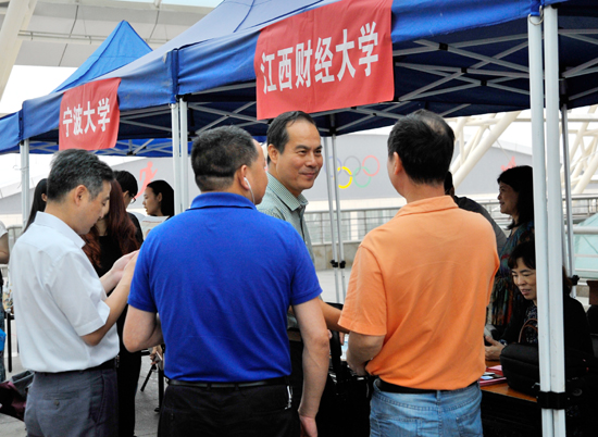 本网讯 近日,2020年全国研究生招生现场咨询会(财经专场)在我校下沙校区举行。来自南开大学、厦门大学、中南财经政法大学等近20所研究生招生单位参会。副校长王奎泉到场与各参会高校研招负责人和考生交流,了解招生咨询情况。