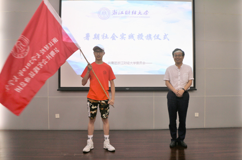 本网讯 6月27日,学校举行2019年大学生暑期社会实践出征仪式。校党委副书记黄建新出席仪式并为暑期社会实践服务团授旗。相关职能部门负责人以及各学院分管学生工作领导和实践团队师生代表等参加仪式。