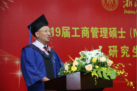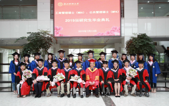 本网讯 7月13日,学校2019届工商管理硕士(MBA)、公共管理硕士(MPA)研究生毕业典礼在下沙校区举行。副校长王奎泉,工商管理学院与公共管理学院领导、导师代表与近百名毕业生及亲友代表等齐聚一堂,共同见证这一美好时刻。典礼由研究生院院长张雷宝主持。