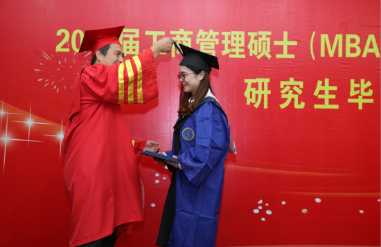 王奎泉为毕业生拨穗。工商管理学院(MBA学院)院长董进才和公共管理学院(MPA教育中心)院长郭剑鸣为毕业生颁发证书。