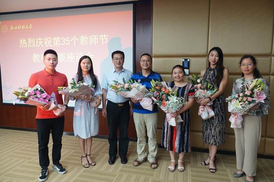 本网讯 在全国上下喜迎新中国70华诞之际,9月10日,学校召开庆祝第35个教师节暨优秀教师表彰会。校领导李金昌、卢新波、徐晓东,相关职能部门负责人及优秀教师代表等参加会议。会议由副校长励如孟主持。