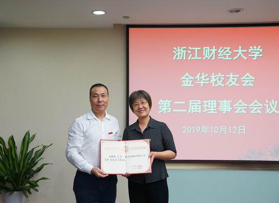 会议还通过了金华校友会第二届理事会名单,李金昌为新当选理事会成员颁发聘书。