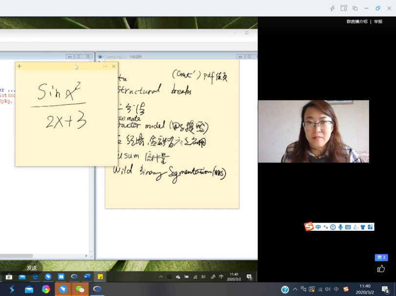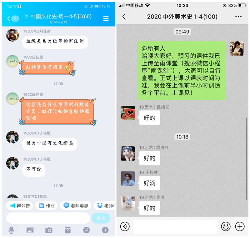 宋晓清:初次在线授课,仿佛又找到第一次走上讲台时的感觉,紧张而兴奋。特别是面对屏幕讲课,少了课堂授课的那种和学生及时互动的感觉。后来通过群聊了解学生的反馈信息,逐渐适应了这种授课方式。在QQ课堂直播时,中途中断了一次,但是根据事前学习的网上攻略,换了一种屏幕分享方式,顺利完成了余下课程。新冠疫情倒逼教师走出传统教学方式的舒适区,虽然短期需要花费精力适应,长期来看也是驱动我们加快养成新的教学技能,适应线上教育发展的新趋势。