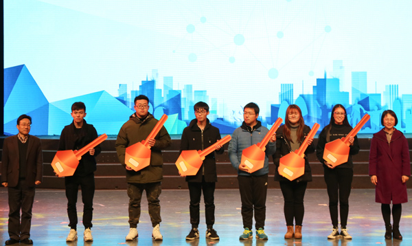 项目路演结束后,还为2018年学校各级各类竞赛获奖团队颁发了荣誉证书,并授予公共管理学院、经济学院、外国语学院优秀组织奖。