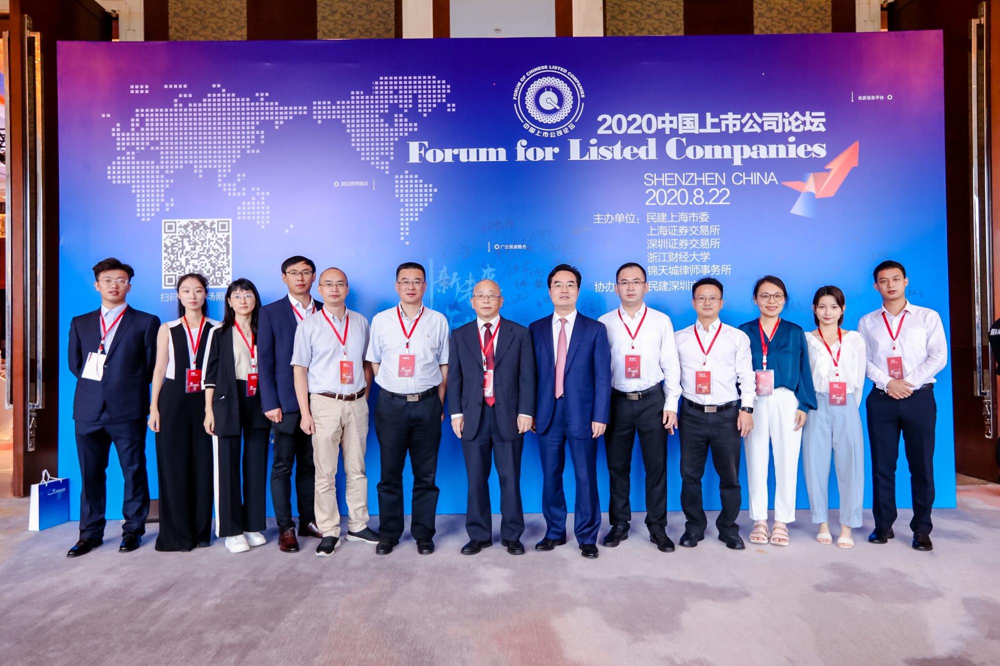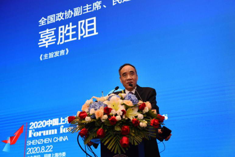 本网讯 8月22日,由民建上海市委、上海证券交易所、深圳证券交易所、锦天城律师事务所和我校共同主办的2020中国上市公司论坛在深圳召开。全国政协副主席辜胜阻、上海市政协副主席周汉民、全国政协常委宋海、广西壮族自治区政协副主席钱学明、校长钟晓敏、副校长徐晓东及来自证券监管部门、金融实务部门、学术界及上市公司等的500余位代表出席本次论坛。论坛以“坚持金融开放,助力平稳转型”为主题,由宋海和钟晓敏共同主持。