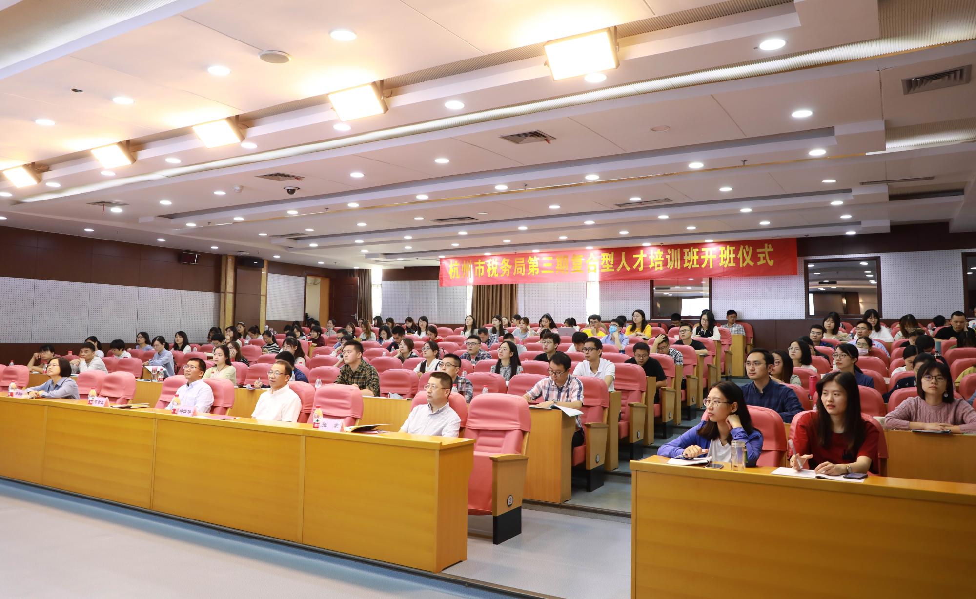 本网讯 近日,国家税务总局杭州市税务局第三期复合型人才培训班在我校下沙校区开班。省财政厅原厅长翁礼华,校长钟晓敏,杭州市税务局党委副书记、副局长林仕华等出席开班仪式。