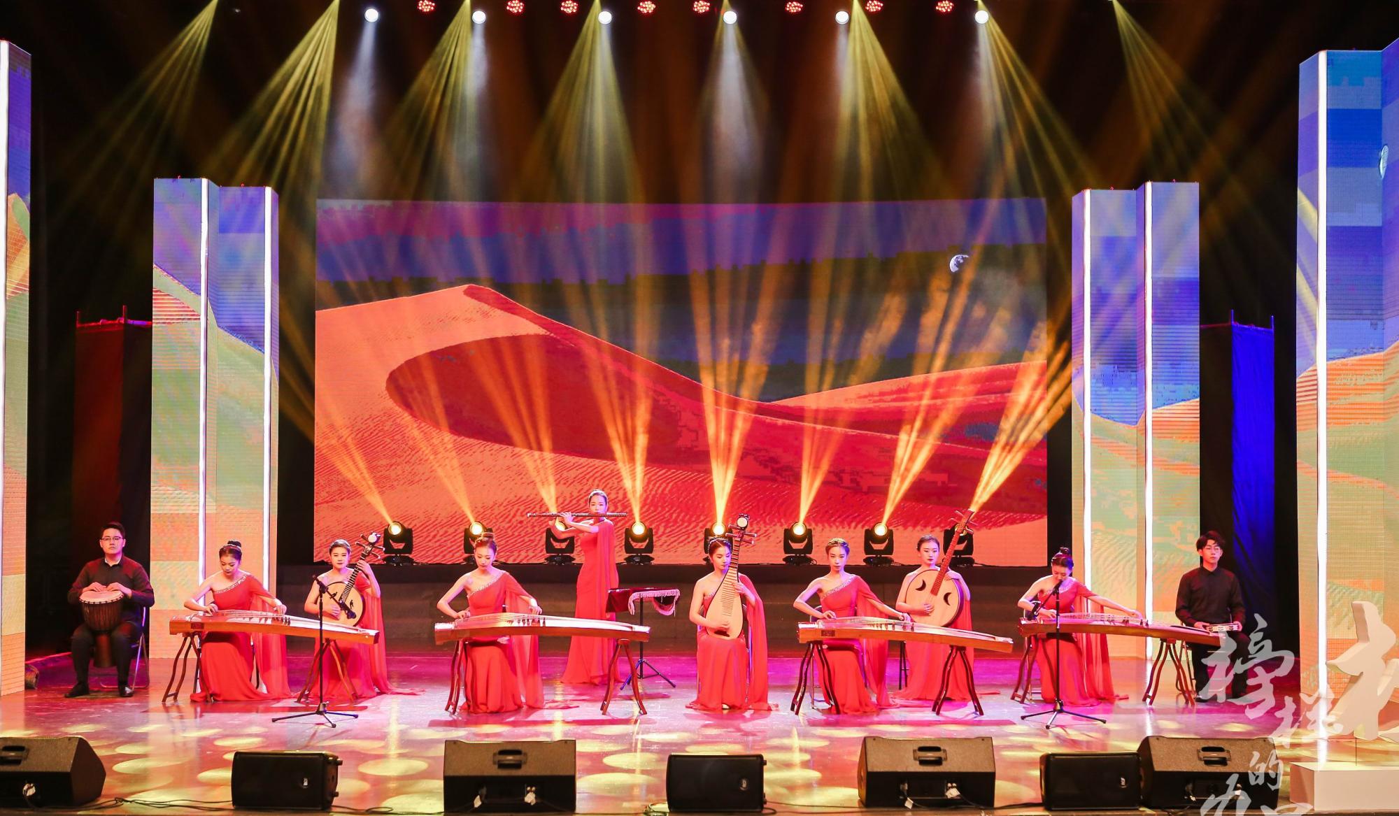 校党委副书记余建森和校第四届教学突出贡献奖获得者邹洁为省大学生艺术节获奖代表颁奖