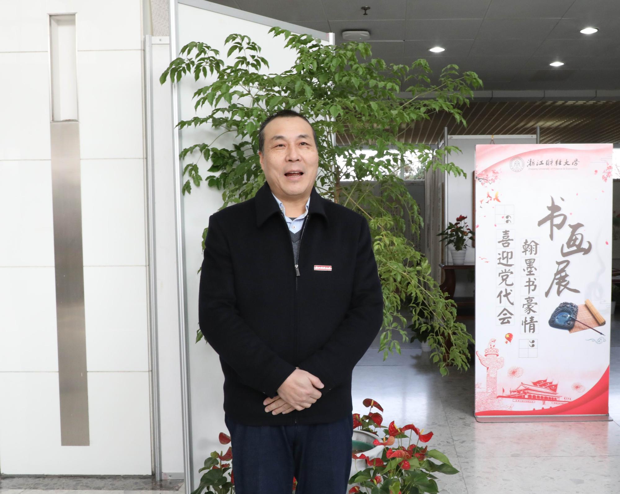 李金昌宣布浙江财经大学“喜迎党代会 翰墨抒豪情”书画作品展正式开幕。