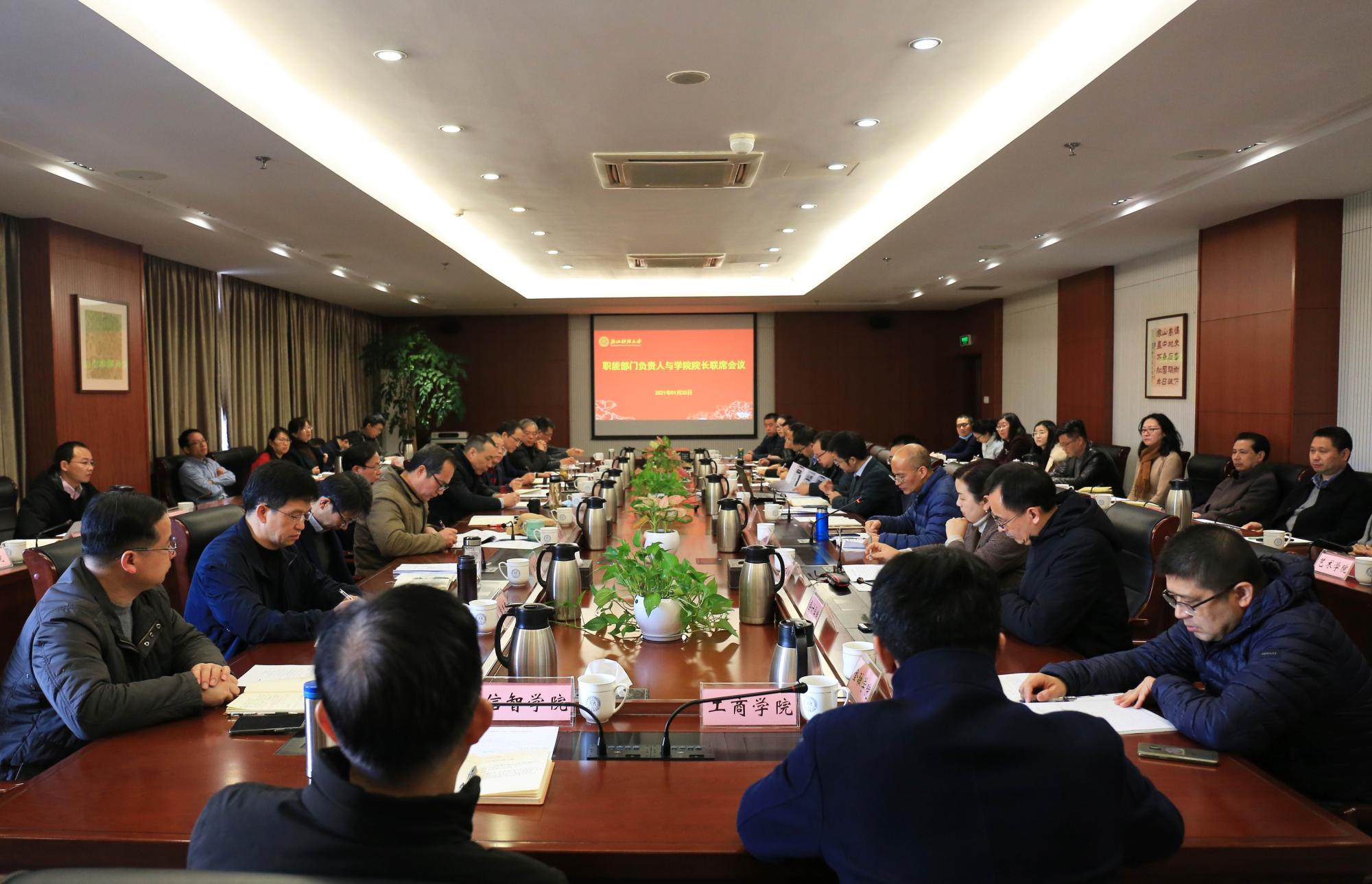 本网讯 为进一步深化综合改革,谋深谋实“十四五”发展,1月20日,学校召开职能部门负责人与学院院长联席会议。校党政领导班子成员出席会议。会议由校长钟晓敏主持。