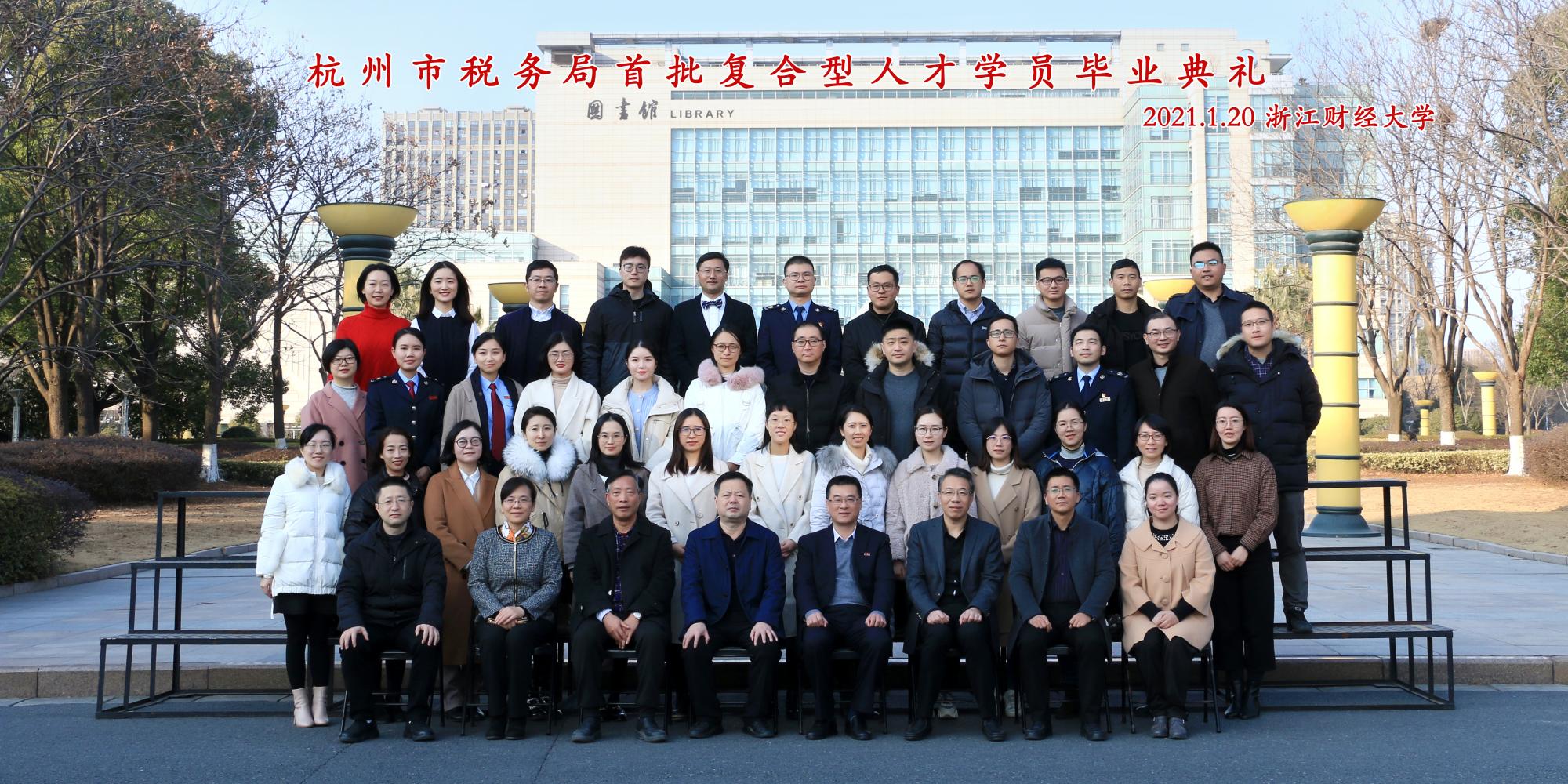 本网讯 1月20日,杭州市税务局首批复合型人才培训班毕业典礼在我校下沙校区举行。浙江省税务局党委委员、杭州市税务局党委书记、局长张惠卿,副校长徐晓东,杭州市税务局党委副书记、副局长林仕华等出席毕业典礼。