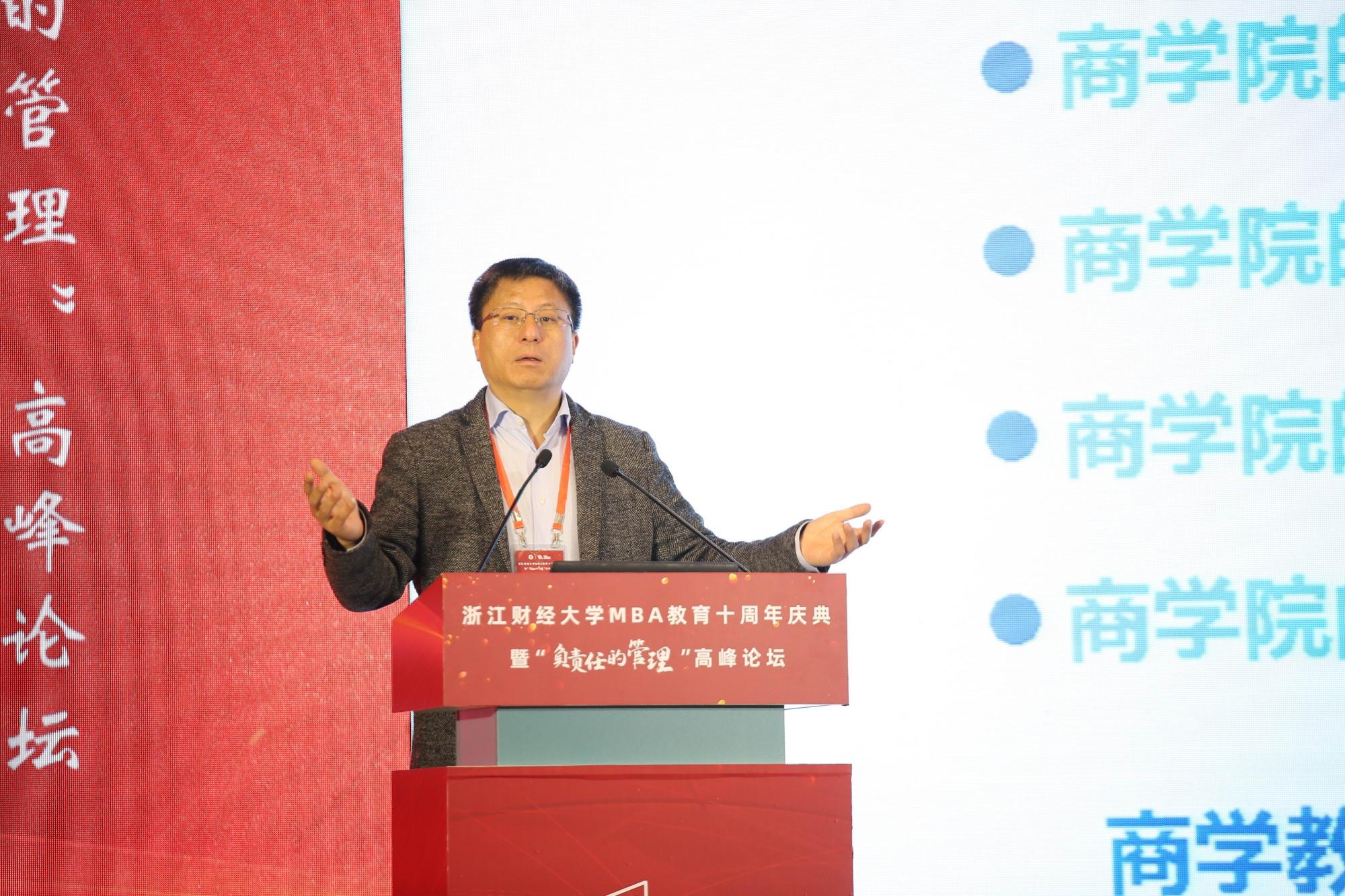 校长钟晓敏在致辞中指出,自2010年首批招生以来,MBA学院为社会培养了众多优秀的中高层管理人才,造就了无数商业精英,极大地推动了浙江区域经济发展和商业文明建设。本次高峰论坛的主题是“负责任的管理”,充分彰显了MBA学院求真务实、服务社会的责任心。他勉励大家继续砥砺前行,推动MBA教育创造新的辉煌。