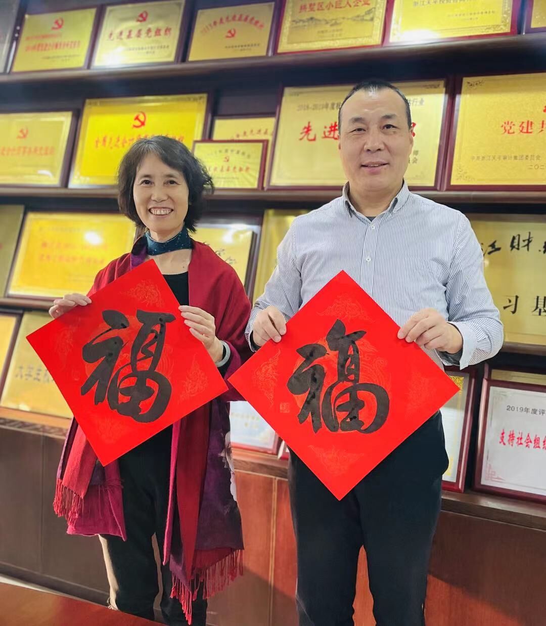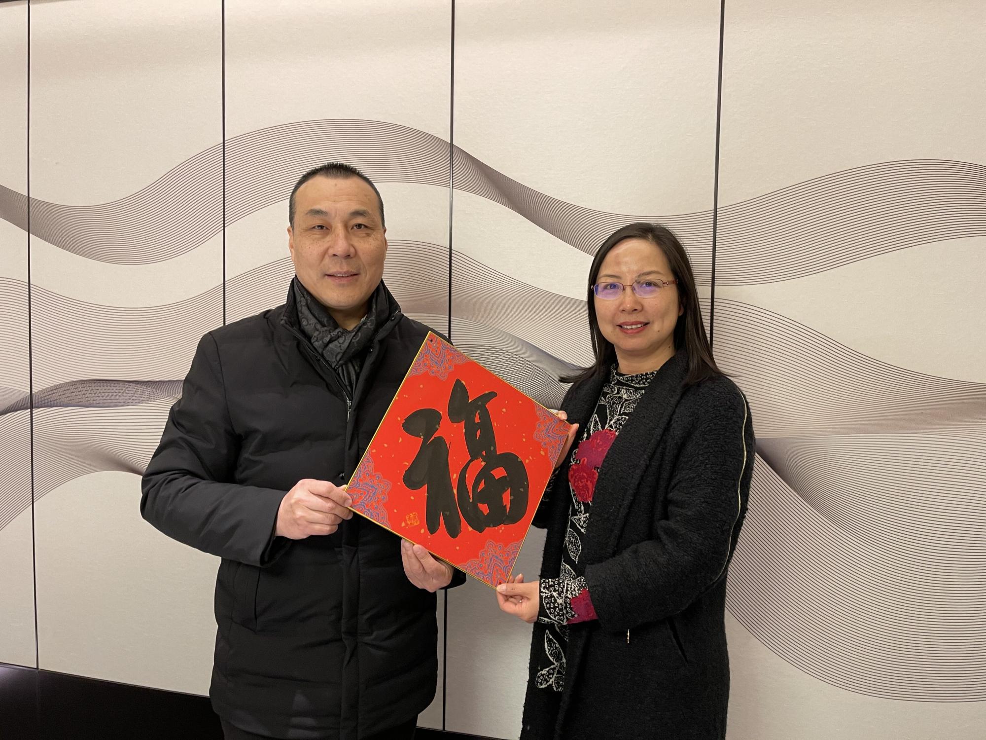 走访期间,校领导挥毫泼墨,题写了蕴含美好祝愿的新春“福”字,创作了情意浓浓的水墨画。红红的福字、高洁典雅的兰花、卓立不阿的竹子、通透空灵的荷叶以及俏丽枝头的梅花……每一幅作品都饱含着对校友的新春祝福和诚挚感谢。