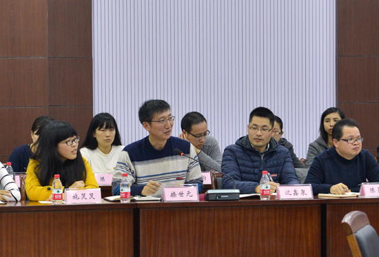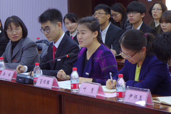 经济与国际贸易学院2012级本科生管丽雅、法学院2013级研究生张明良、财政与公共管理学院操世元老师、思政部何历宇老师、辅导员陆颋浩分别汇报了各自学习贯彻党的十八届五中全会精神的体会和感想。
