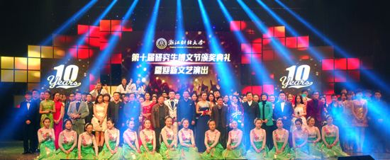 12月8日晚,我校第十届研究生博文节颁奖典礼暨迎新文艺演出在文化中心大剧场隆重举行。校领导,首届“卓越研究生导师”及提名奖获得者,相关职能部门负责人、各学院分管研究生工作书记出席颁奖典礼。浙江大学、浙江工业大学、安徽财经大学等11所兄弟院校研究生会代表观摩了颁奖典礼和演出。
