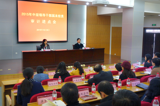 12月8日上午,学校召开2015年中层领导干部届末经济责任审计进点会议。纪委书记陈金方主持会议并讲话,校内47个部门或单位的经审对象、联络员、审计组成员参加会议。