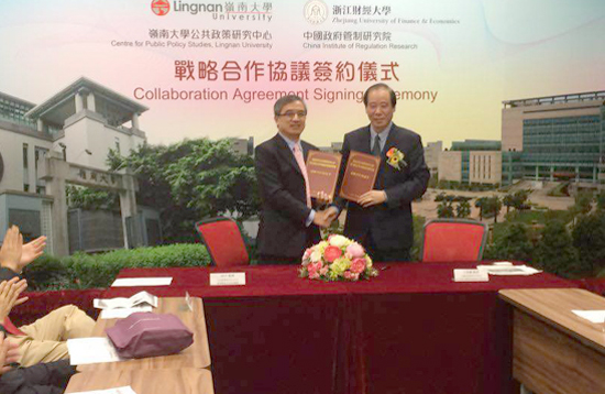 应香港岭南大学邀请和资助,我校王俊豪教授对香港岭南大学作了为期1周的学术访问。12月3日,王俊豪教授代表我校中国政府管制研究院和香港岭南大学公共政策研究中心签订了战略合作协议。双方将发挥各自的学术和资源优势,共同推动政府管制改革和政策研究。