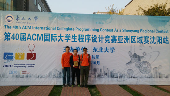 10月25日,第40届ACM国际大学生程序设计竞赛(ACM-ICPC)亚洲区域赛沈阳站在东北大学圆满落幕。由我校信息学院陈铭洲、陈海杰和厉伟键等同学组成的团队依靠扎实的专业水平,良好的团队协作和心理素质,发挥出色,最终赢得比赛的金奖。