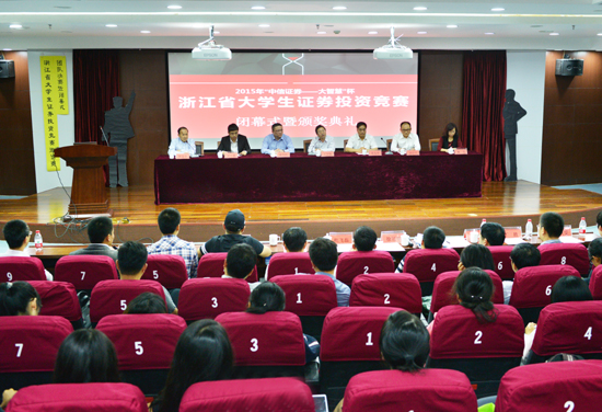 10月17日,浙江省首届大学生证券投资竞赛(邀请赛)团队赛决赛暨闭幕式在我校学术中心举行。浙江省教育厅高教处副处长王国银,副校长苏为华,教务处、金融学院领导,以及来自中信证券、上海大智慧、盈阳资管的业界嘉宾出席了本届大赛。