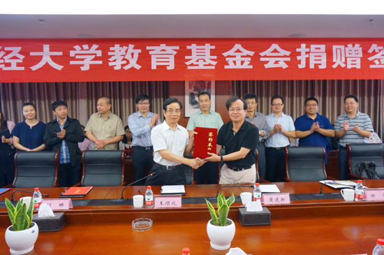 捐赠双方签署了捐赠协议,李金昌代表学校接受了捐赠支票,副校长黄建新为捐赠者颁发了捐赠证书、纪念杯。