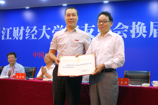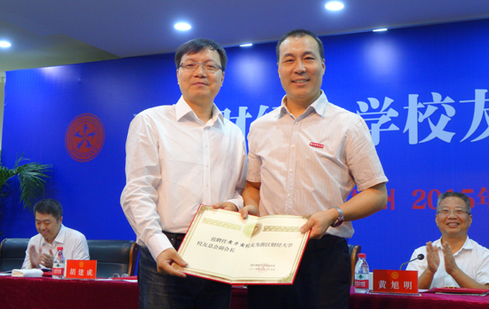 黄旭明校友作了重要讲话。他表示,作为财大人,这些年一直关注并见证了学校的成长。他充分肯定了学校办学40余年来取得的巨大成绩,指出办学以来,学校秉承“进德修业、与时偕行”的校训,不断加强优势学科建设,提升教学质量和科研水平,培养了一批又一批的优秀人才,广大财大学子,不忘母校嘱托,在不同的工作岗位上建功立业,为校争光。回想起在校读书的时光,至今仍然清晰记得恩师的谆谆教诲、同学的同窗之情。他认为校友会是学校和校友间一个非常好的沟通桥梁,是思念恩师、凝聚校友、互利共赢的交流平台。他希望学校和广大校友借助校友会这个平台,充分发挥母校和校友双向的资源优势,为国家和浙江的经济社会发展做出更大的贡献。