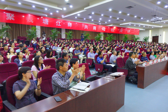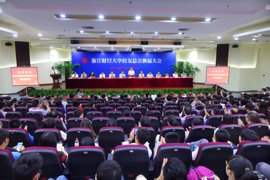 校长李金昌致欢迎辞。他表示,校友是学校最宝贵的社会资源。近年来,校友工作蓬勃开展,广大校友在事业取得成功的同时,不忘回馈母校,学校位列2014年中国高校校友捐赠排行榜第54位。他强调,建设国内一流、国际知名、特色鲜明的创新创业型财经大学是全体浙财人在新的历史起点上确立的宏伟目标,实现这一目标任务非常重要,需要得到各级党委政府和社会各界的关心支持,更需要全体浙财人的艰苦奋斗。