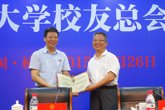陈根芳书记为校友总会顾问黄旭明校友颁发聘书