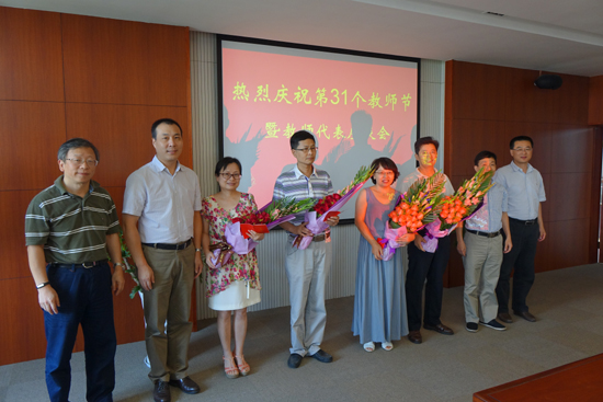 9月10日下午,学校召开庆祝第31个教师节教师代表座谈会,表彰任教30年教师代表、风华奖(进校工作满30年教职工)获得者代表、优秀教师代表、先进个人代表、优秀辅导员代表、“我心目中的好老师”代表等。学校领导向金融学院教师叶晓凌、工商学院教师许胜江、外国语学院教师鲁春芳、思政部教师高湘泽颁发了“任教30年”荣誉证书,向学生处沈水法、法学院蔡国金、成教学院李梅、后勤服务中心杜凯等教职工颁发了风华奖奖章。