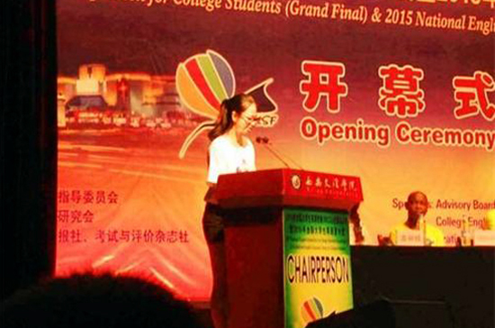 在全国总决赛中,郑依伦同学发挥出色,在与来自全国各地300余名优秀选手同台竞技的过程中,以自信大方的谈吐气质和流利地道的英文口语征服了现场评委和观众。郑依伦同学不仅在总决赛开幕式上被选为全国参赛选手代表致辞,在竞赛过程中也力压群雄获得了多项国家级奖项:第十六届全国大学生英语演讲大赛二等奖、第十六届全国大学生英语辩论赛三等奖、全国大学生英语辩论“最佳辩手”、全国大学生英语竞赛“优秀参赛选手”。