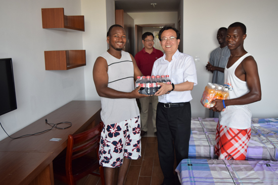 8月6日,副校长黄建新在国际学院负责人等陪同下,走访慰问了留校留学生。黄建新详细询问了他们的居住、生活和学习情况,叮嘱他们要注意防暑降温,劳逸结合,度过一个安全愉快的暑假。