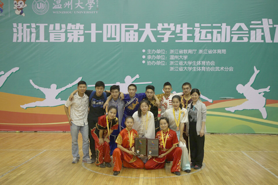 我校武术队的10名运动员在领队和教练的指导下,在紧张激烈的比赛中,不畏强手,沉着应战,最终获得1金、2银、2铜、1个第四、1个第五,3个第六,6个第7,集体项目第五名,女团第二名、男团第七名、团体总分67.5分排名第四的好成绩。此外,应昌达老师获得“优秀教练员”称号,虞倩倩同学获得“优秀运动员”称号。