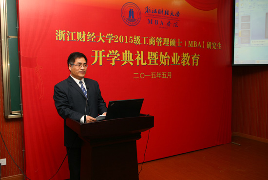 典礼上,苏为华副校长代表学校对2015级MBA研究生的到来表示热烈的欢迎和衷心的祝贺,并对2015级新生提出了三点希望与要求:一要志存高远,合理规划学习生活;二要进德修业,培养社会责任意识;三要与时偕行,加强培养创新能力。